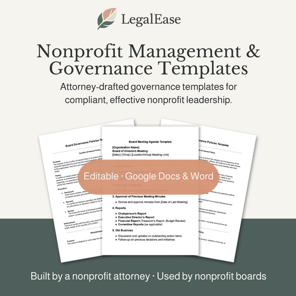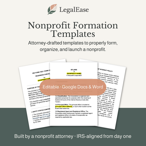 LegalEase was created to make nonprofit law approachable, practical, and affordable. These templates reflect real-world nonprofit practice — designed to be used, not just downloaded.